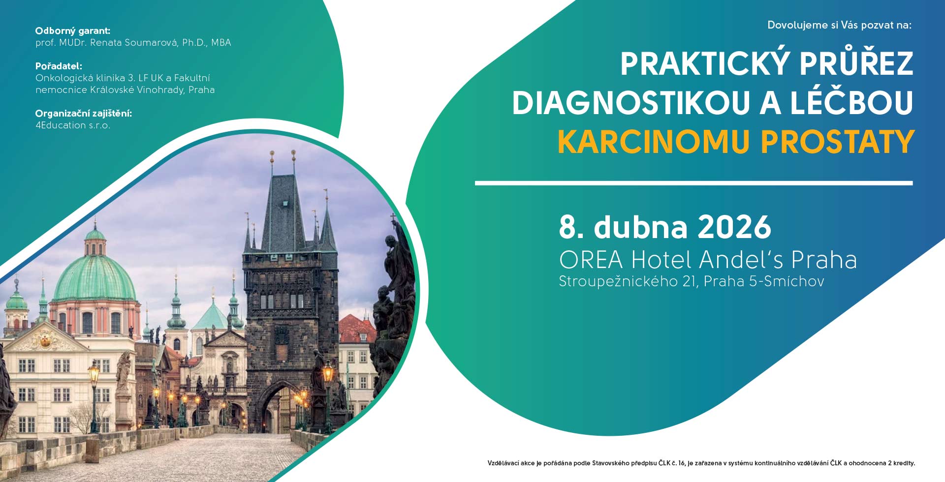 | 17:00–17:05 | Úvodní slovo prof. MUDr. Renata Soumarová, Ph.D., MBA, (Onkologická klinika 3. LF UK a FNKV) prof. MUDr. Roman Zachoval, Ph.D., MBA, (Urologická klinika 3. LF UK a FTN) |